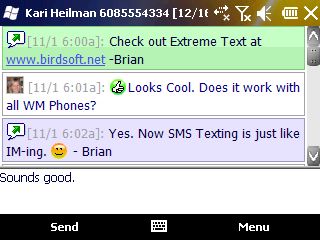 Extreme Text is the premier Threaded SMS Texting application. It allows you to view all of your Texts as separate conversations for each contact you SMS, much like an Instant Message Conversation.
